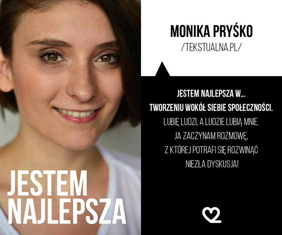 Pewnie, że trzeba wziąc udział :) Myślę, że rzeczy, w których sie jest dobrym jest bardzo dużo, ale własnie najtrudniej jest to okreslić i opisać. Trzeba odsunąć ze stanowiska wewnętrznego krytyka i się chwalić! Czekamy na Twoje zgłoszenie, jest jeszcze czas, więc na spokojnie :)